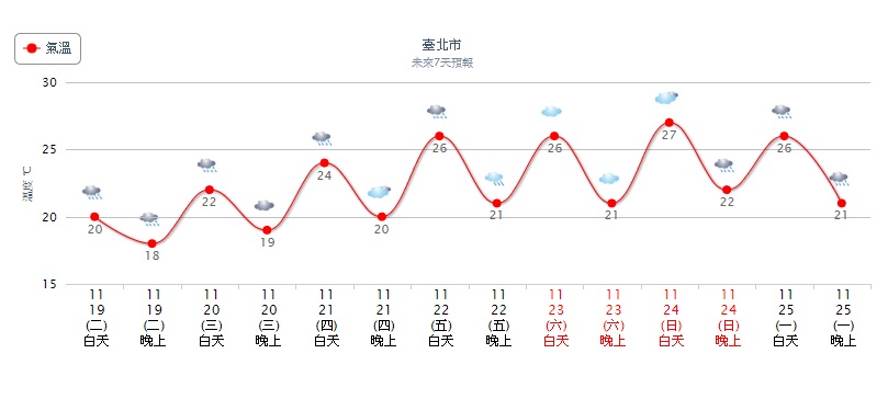 ▼北市未來一周溫度趨勢圖。圖/中央氣象局