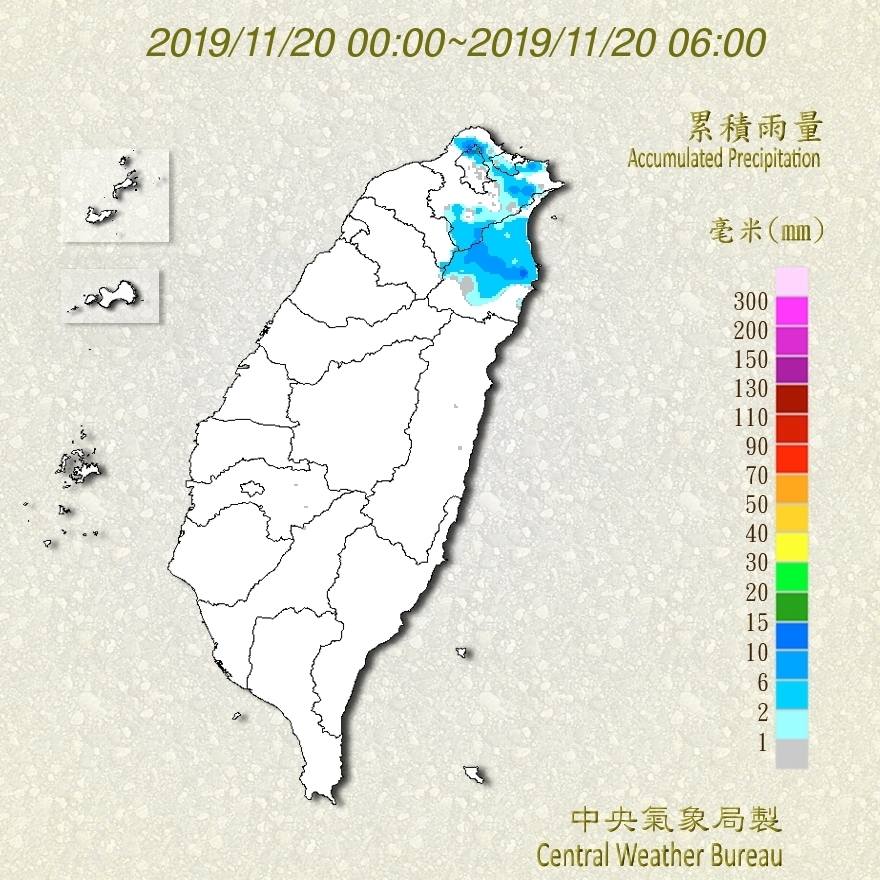 溫度方面,清晨仍偏涼,人工測站最低溫出現在蘇澳16.8度,自動測站則是桃園市茶改場的15.5度,中部以北及宜花低溫約17、18度,沿海、空曠地區會再低一些,其他地方則在20到22度,白天高溫逐漸回升,不過桃園以北及宜蘭回升有限,高溫只有20、21度,其他地方則在24度以上,中南部可以來到27、28度左右,中南部日夜溫差再度變大,請適時增減衣物,一直到明(21)日東北季風才會稍減弱。