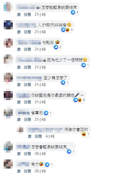 也有許多網友一見到「怎麼了」,就忍不住想唱歌的慾望,紛紛想起歌手周杰倫和周興哲的歌曲,在底下瘋狂歌詞接龍,讓留言充滿聲音,「怎麼了,妳累了,說好的幸福呢」、「你說藍色是你最愛的顏色,你說如果沒有愛那又如何,怎麼了,你怎麼了」、「怎麼這樣子,你拉著我說你有些猶豫」。