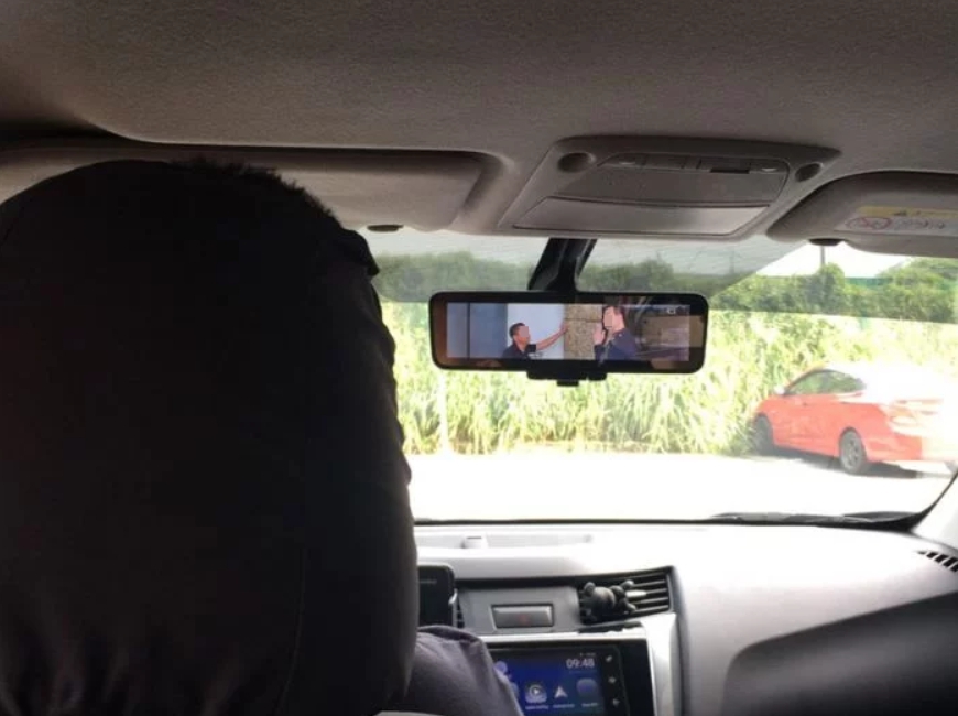 原來,原PO以為的電視螢幕與畫面,其實是後照鏡反射車子後方路人聊天的樣子,因而引發的誤會,這讓她非常傻眼,直呼「未免太像電視畫面了吧」,也慶幸自己還沒開口告訴司機。