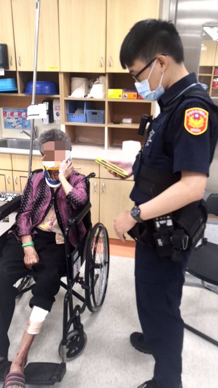 三民派出所警員林揚學、吳儒宗趕往現場處理後,見老婦嘴巴都是鮮血集群身多處擦傷,便陪同老婦前往高醫就診,診療包紮後,發現老婦脖子綁著護具,嘴巴貼著紗布,疑似頸部及嘴巴有受傷導致無法順利講話,林員先詢問其有無攜帶證件,婦人搖頭表示沒有,問其姓名及住址,老婦講話,十分含糊,在場人員都無法明白其想表達之意思,且經查其身上並無愛心手鍊或家人之電話號碼可供聯絡,於是林員便使用人臉辨識系統來協助確認老婦身分,希望可以助其聯繫上家人,看老婦之身體狀況,應該高齡超過80歲,不太可能走遠,家人應該正心急如焚,經過林員初次辨識比對50筆資訊並拿給老婦查看,但老婦皆搖頭表示不是本人;然而林員仍鍥而不捨,向老婦繼續詢問希望能聽出蛛絲馬跡,並不斷更換不同角度的照片比對,在茫茫人海中比對了約有2、300筆的資料後,林員最終發現一位沈姓老婦(88歲)外貌及下巴等輪廓相當吻合,詢問老婦,老婦很含糊地用台語講出「哇咖肖連ㄟ習」,也終於確認老婦的身分。