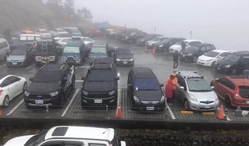 ▼武嶺停車場大爆滿。(圖/東森新聞)