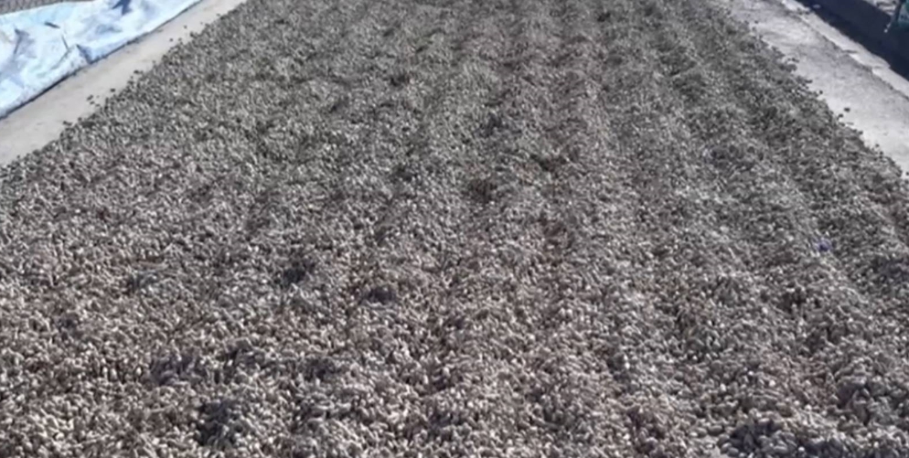 花生農:「都是在路邊曬乾了蓋起來,他們說要來載,結果都沒有,我們是怕說被偷,才跟人家借地方來放。」