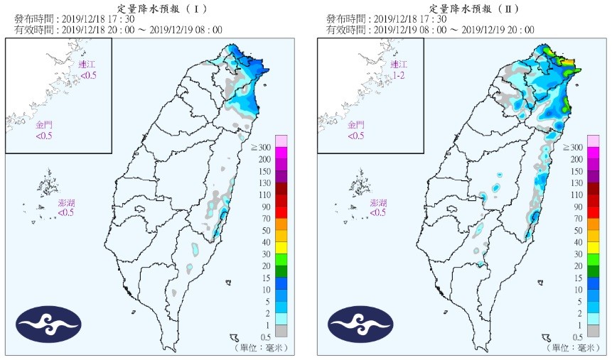 氣象局說,預計這波東北季風會影響到20日,最冷的時間點落在19日晚上到20日清晨,中部以北低溫下探15度到16度。氣象局表示,21日白天東北季風減弱,但很快地22日就會再度增強,屆時低溫部分,中部以北可能下探14度到15度,但水氣會比這波還要少一點。