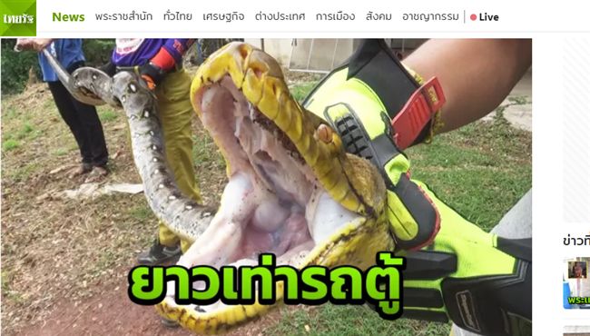 除此之外,今年5月泰國一名屋主發現自家的貓少了一隻,沒想到幾日過後,家中竟突然出現一條巨大蟒蛇,嚇得急忙報案。隨後捕蛇大隊趕到現場,花了1個多小時才終於抓到這隻巨蟒,不少人看到這條蟒蛇裂開大嘴的模樣,都忍不住不寒而慄。