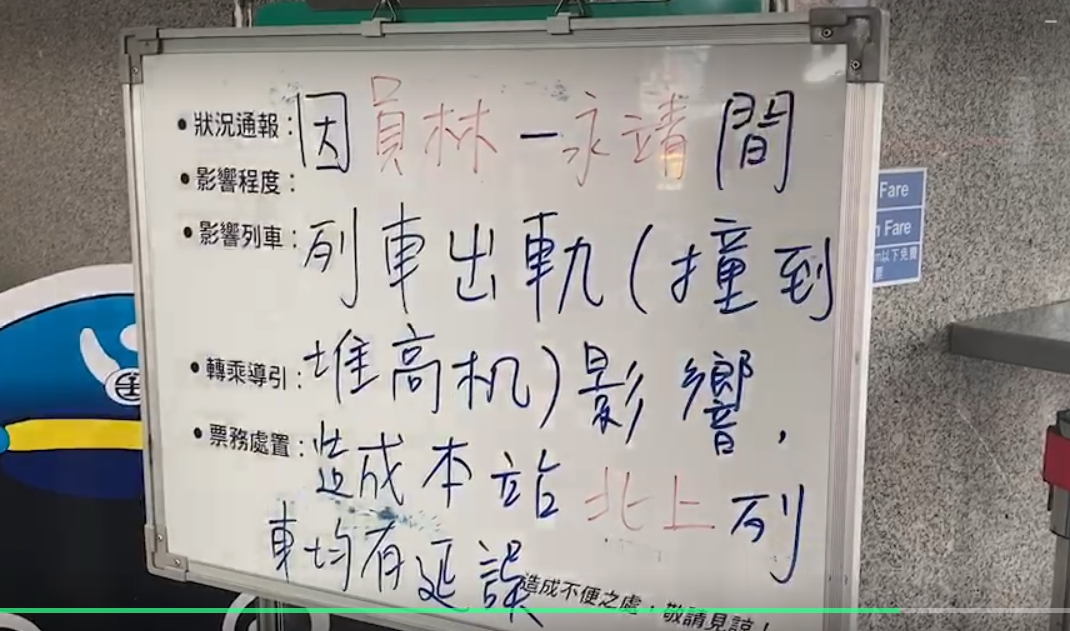 台鐵表示,無法預計什麼時候可以搶通,目前單線雙向通行,下午西部幹線應該都會受到影響。