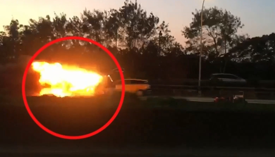 火燒車過程正值下班時間,不少車輛從旁邊經過,一度時速只有十幾二十公里,其中事發車輛右側,不少通往高鐵駕駛經過火燒車旁,相當緊張。