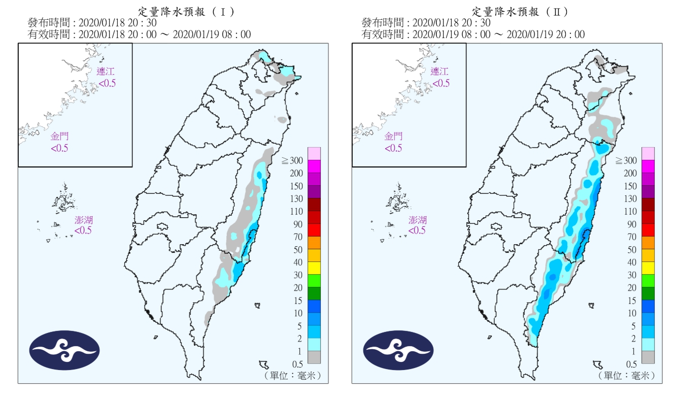 氣象局指出,明天早上起,冷氣團逐漸減弱,高溫比起今天略有回升,北部及宜花回到18至20度,中南部及臺東地區23至26度,降雨也會逐漸以東半部的局部短暫雨為主,大臺北山區雨勢零星,天氣逐漸好轉,由於水氣減少,因此預估直到除夕都會是好天氣。另外需要注意的是,明日中部以北沿海空曠地區易有較強陣風,基隆北海岸仍易有突發性的大浪發生,海邊活動或海上作業請注意安全。