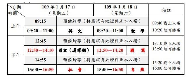 ▼109年學測考科日程表。(圖/翻攝自大考中心 )