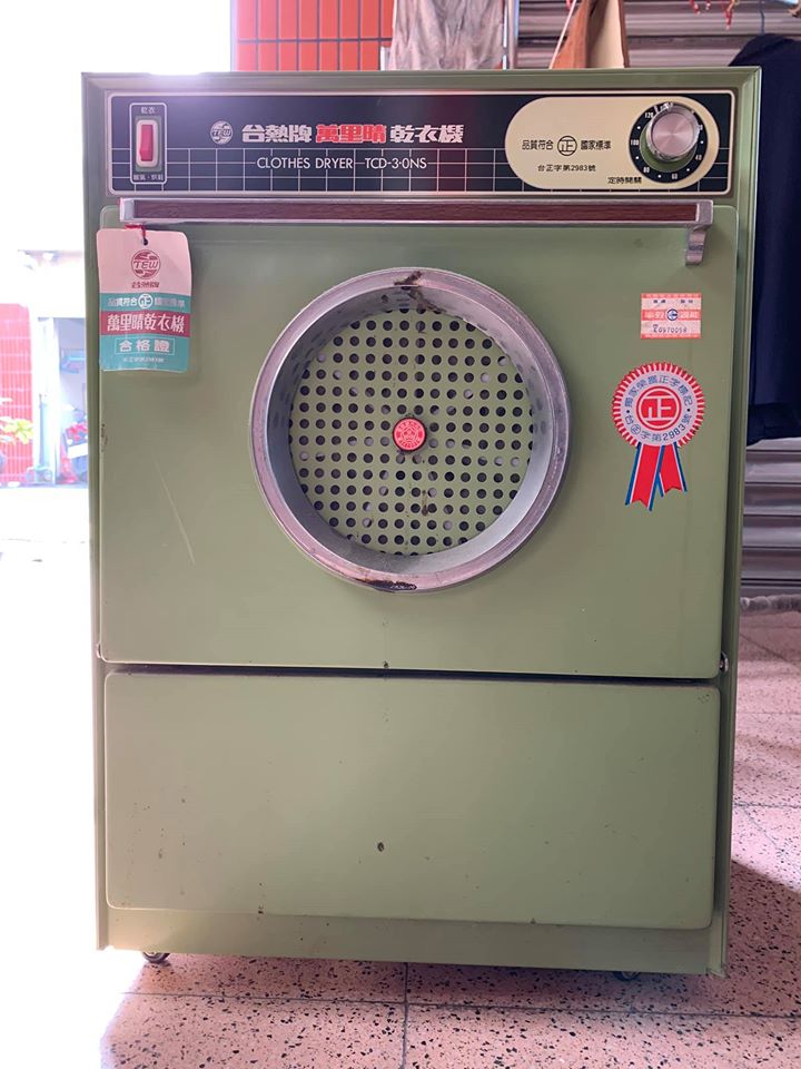 男網友在臉書社團《爆廢公社》發文,「整理家裡,發現一台完全沒用過的烘乾機,聽我爸說30幾年了」還興奮詢問「有人也在挖寶嗎?」照片中可見,這台烘乾機有著方形外觀,外殼則是綠色,方正設計看起來頗有年代感,雖然因為放得時間有點久,鐵圈有些生鏽,也有幾處掉漆,但貼紙和合格證都未拆下,整體算是保存良好,原PO也透露「剛剛試過還能用」。