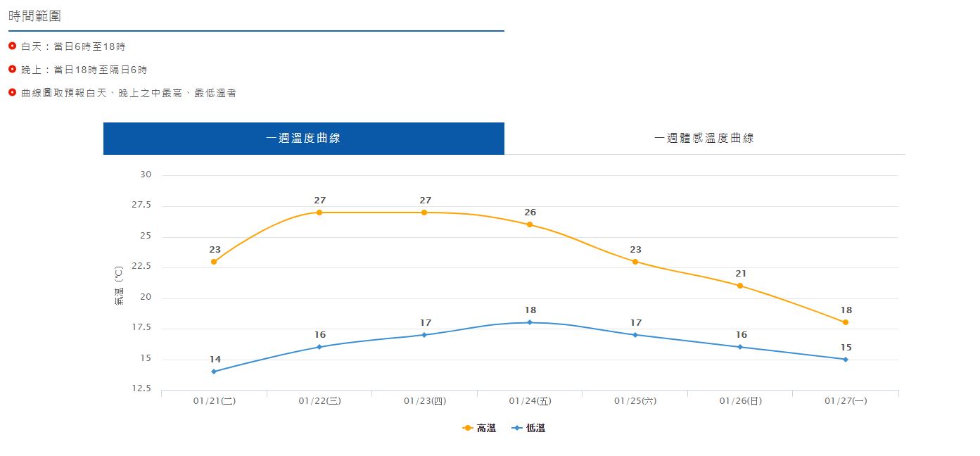 中央氣象局說,明天白天起冷氣團減弱,僅東半部地區為多雲,有局部短暫陣雨,其他地區為多雲到晴,加上冷氣團減弱、水氣減少,各地氣溫明顯回升,北部及東北部預計高溫可以回升到23至25度,花東地區約24至26度,中南部地區更高約25至27度,甚至南部局部地區不排除上看28度以上,提醒民眾需適時的調整穿著。