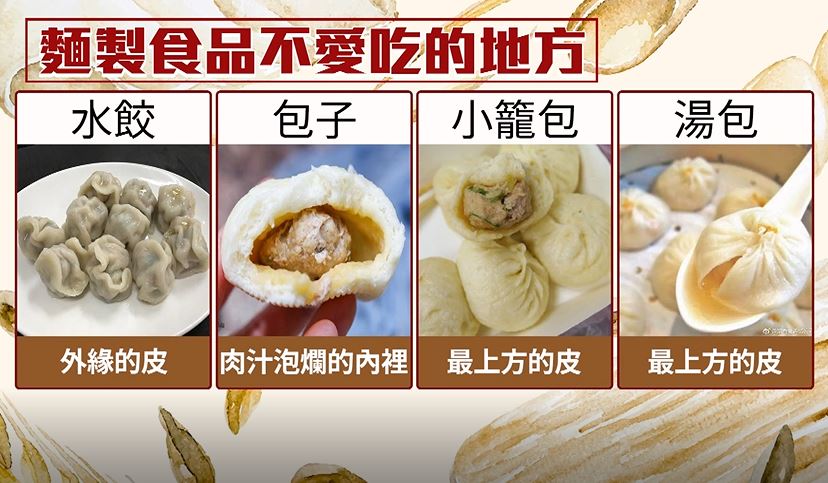 就有網友整理麵食製品,大家不愛吃的原因,像是水餃只吃飲不吃皮,包子不愛被肉汁泡爛的內裡,還有小籠包和湯包不愛吃上方的皮。