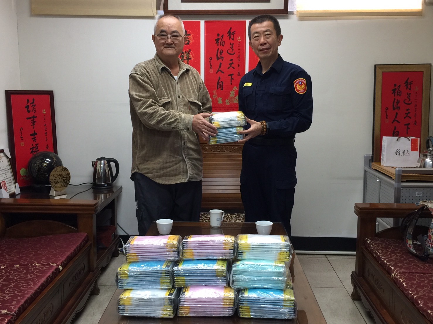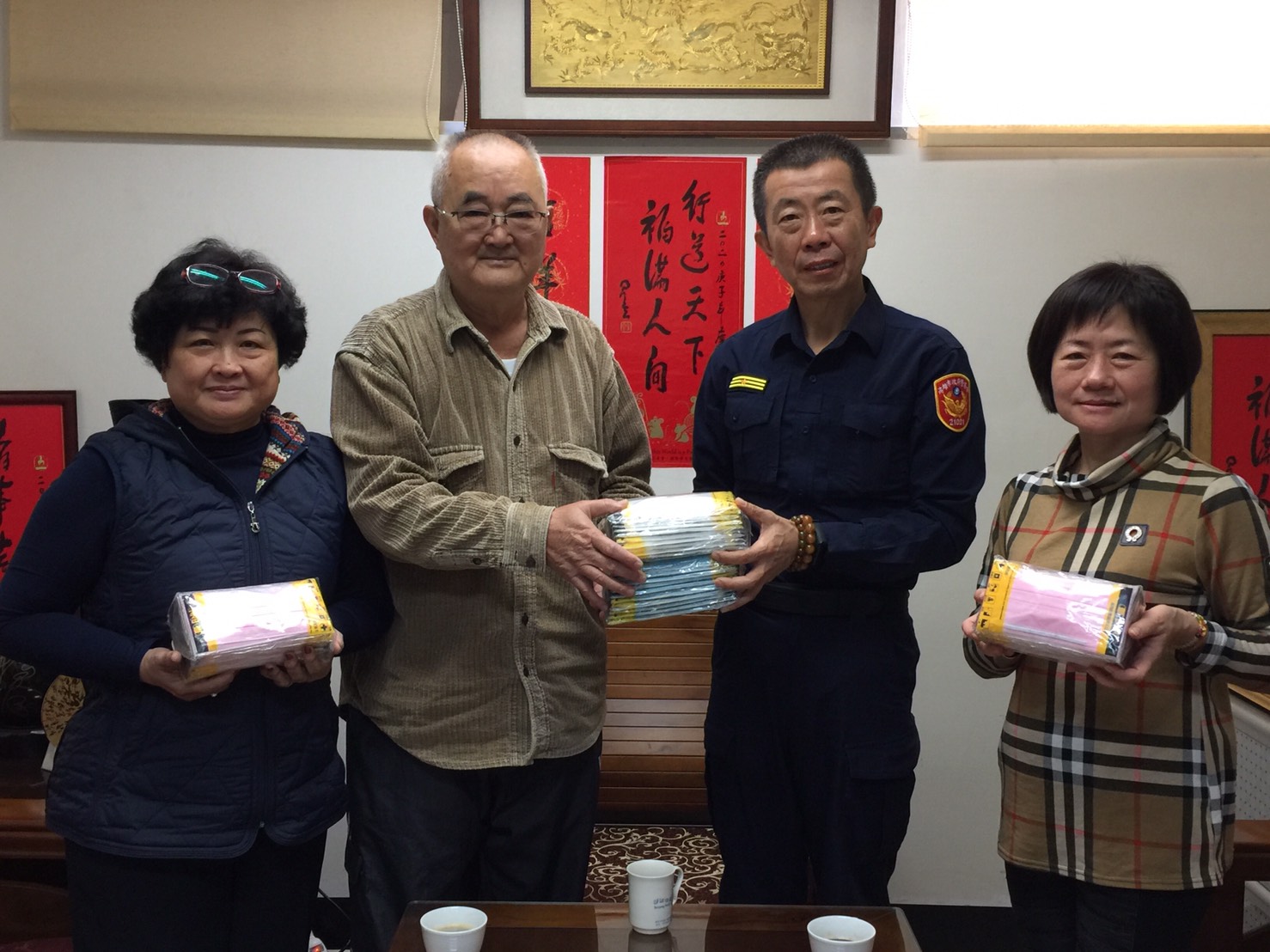 近期氣溫驟降,日夜溫差大,國內加強防疫之際,高雄市菩薩功德會理事長劉清諒,特於1月31日10時30分特至仁武分局致贈口罩給執勤員警,讓同仁執行勤務無後顧之憂,大家直呼「揪感心」。