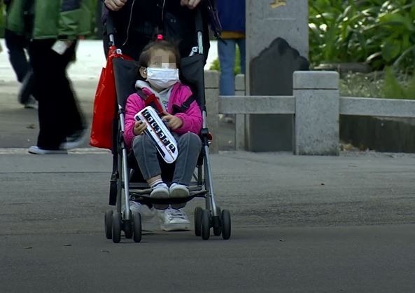 難得好天氣,家長 都帶著小朋友 ,出來透透氣,而為了預防武漢肺炎,大多數家長,都幫孩子戴上口罩防疫。