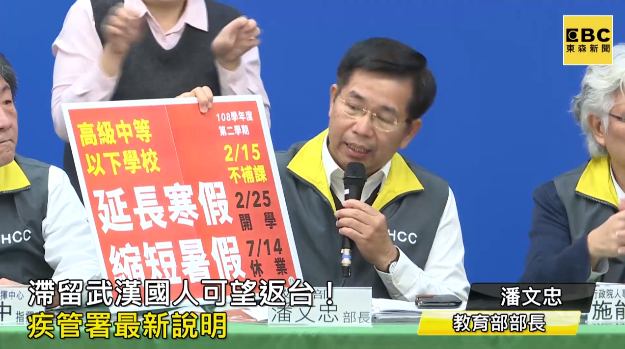 A:教育部長潘文忠指出,之前sars是發生在學期當中,但這次國外武漢肺炎逐步升溫,且是在台灣學期開始前,因此是近年來第一次延長寒假、縮短暑假的措施;勞動部指出,這是衛福部近幾年來首次下達防疫照顧假的命令,為避免12歲以下學童無人照顧,因此家中有國小(含)以下的學童家長,在此2週期間內可向雇主申請防疫照顧假。