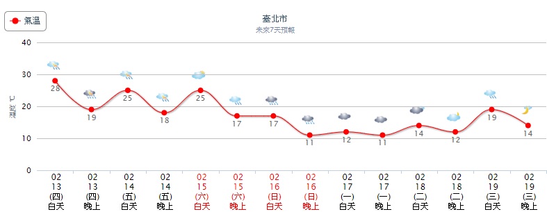 氣溫部分,雖然受到下雨影響,周五各地高溫小小下降,中部以北高溫降約3-5度,南部、東部約降2-3度,但清晨低溫變化不大,直到周日才會開始轉冷。