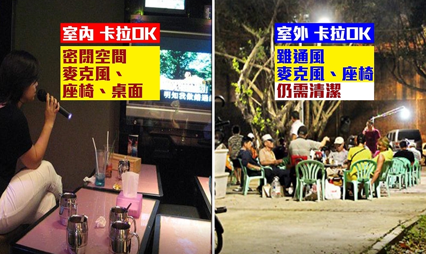 不過60多歲的婦人曾去的卡拉OK,是室外卡拉OK,雖然比室內的還要通風,不過麥克風跟座椅也是一個接著一個客人使用,仍然需要清潔,而室內卡拉OK因為是密閉空間,每個細節都要小心。