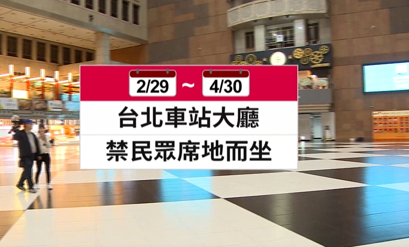面對疫情升溫,不只大眾運輸工具全面升級防疫測體溫,就在台北車站大廳,原本大家習以為常的旅客席地而坐群聚畫面也被禁止,就是避免群聚感染可能,從2月29日開始到4月30日,大廳禁止民眾席地而坐及群聚。