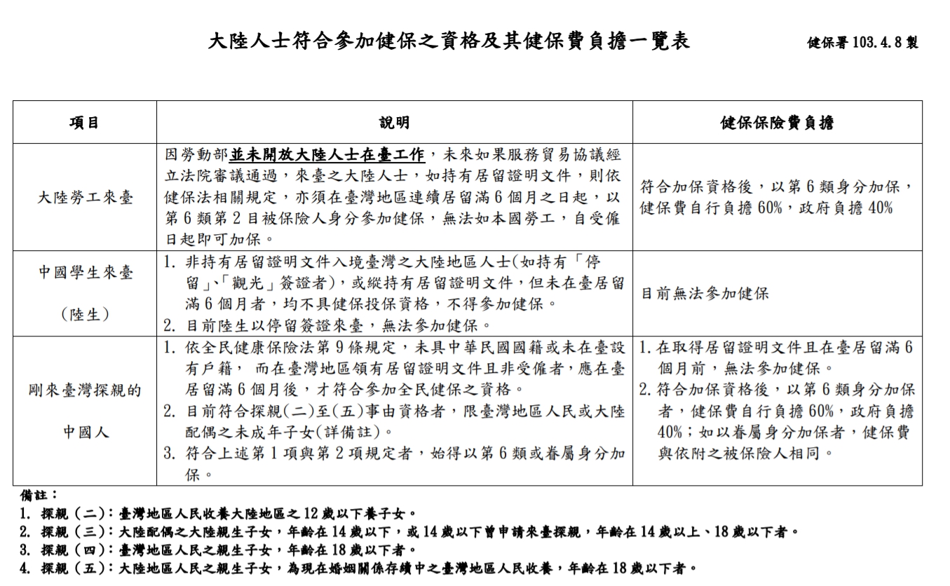 ▼健保署於103年公布大陸人士可參加健保資格相關規定。(圖/翻攝自健保署)