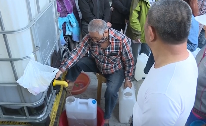 婆婆媽媽只要沒事的就會趕來排隊,因為有人捐出三百噸的清潔液給當地居民,每人可以免費領四十公升。