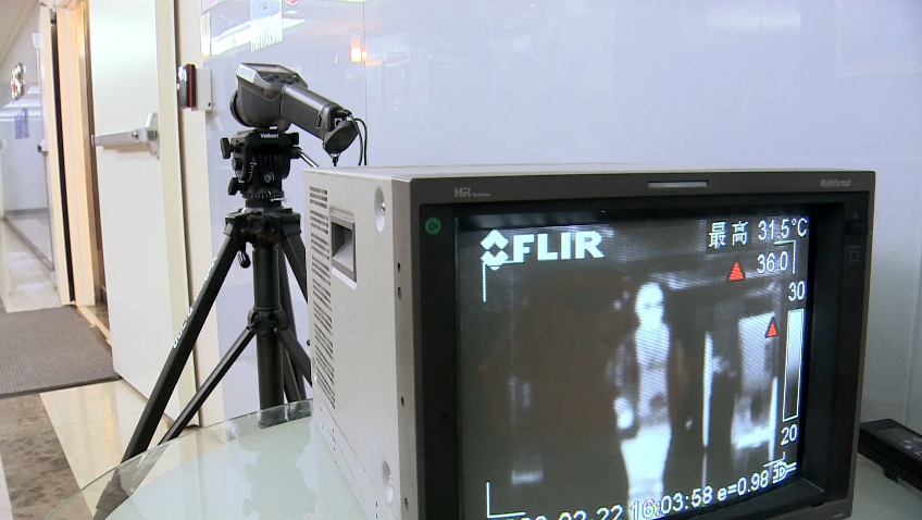 ▼不少辦公大樓早就出動熱顯像儀,透過螢幕掌握進出的人員。(圖/東森新聞)