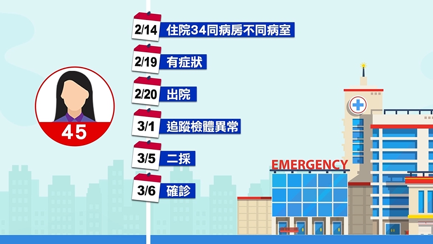 ▼外界猜測會不會是案34間接傳染給案45的。(圖/東森新聞)