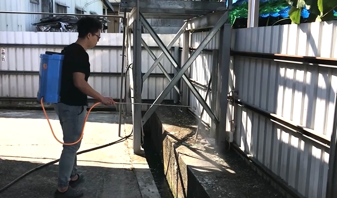 噴灑消毒,南投竹山紫南宮防疫工作步步為營,疫情嚴峻下,甚至單日出現10例境外移入確診病例,各縣市政府也都分別宣布,禁止員工及學校教職員出國,紫南宮也開出宗教團體第一槍,宣布禁止廟方工作人員,以及向紫南宮申請補助的社區團體出國旅遊。