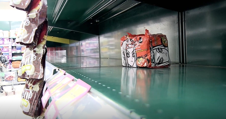 ▼只要是泡麵無論種類都被搶購一空。(圖/東森新聞)