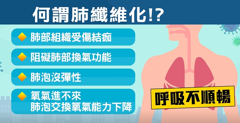台大兒童醫院小兒部醫師李秉穎:「破壞我們的肺泡,肺臟組織沒有辦法作,換氣功能的話,我們的組織修復,就是會用纖維組織,來取代原來被破壞掉的肺泡,那就是所謂的肺部纖維化。」
