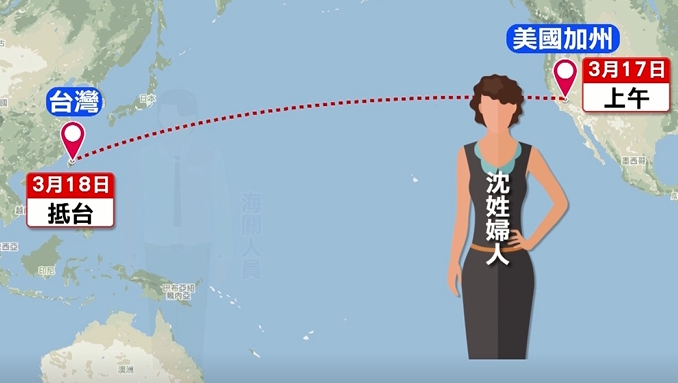 時間推回17日上午,沈姓女子一路從加州飛回台灣,全程口罩戴好戴滿,加上護目鏡、手套,不敢上廁所,甚至只喝一點水,就怕搭了飛機被感染,18日抵達台灣。」
