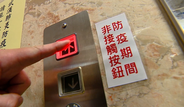 ▼武肺疫情延燒,最怕病毒殘留在電梯面板上,提高接觸傳染的風險。(圖/東森新聞)