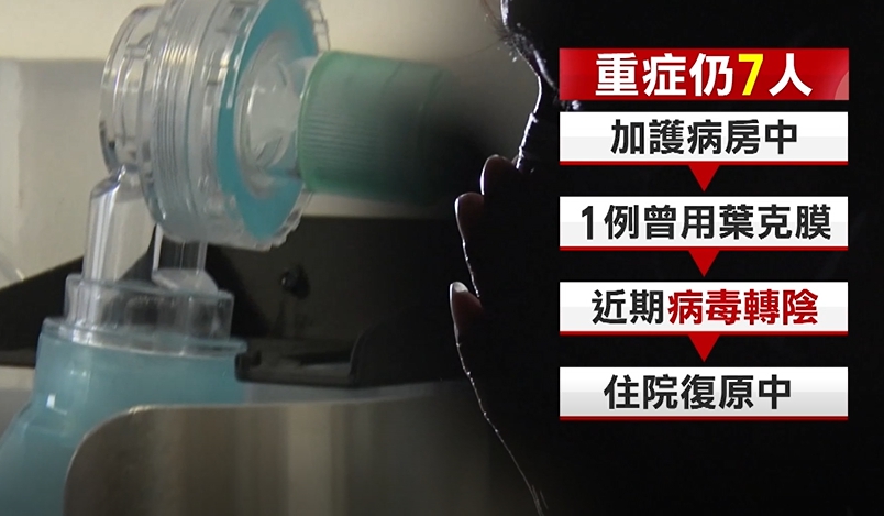 疫情指揮中心專家諮詢小組召集人張上淳:「最早有一例,大家都認為很嚴重的病例,住進加護病房使用呼吸器,甚至用到葉克膜,不過後來順利脫離葉克膜跟呼吸器,也已經病毒都陰轉,也已經離開加護病房。」