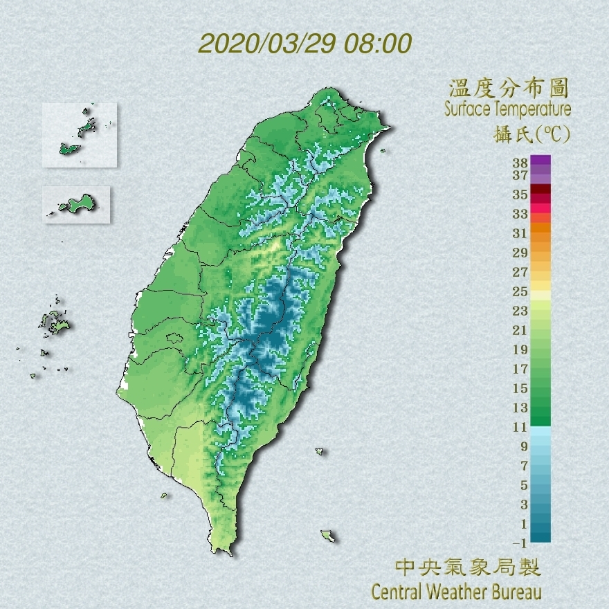 預估明日(30日)起氣溫回升,不過周三(4月1日)又有一波鋒面通過,東北季風增強。
