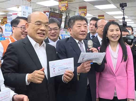 口罩實名制2.0上路後,不少人可以在網路上預約購買,傳出接下來有機會用健保卡,到超商買口罩,對此,行政院長蘇貞昌說,政策還在研議中。蘇貞昌也特地和衛福部長陳時中,到藥局視察口罩情況。