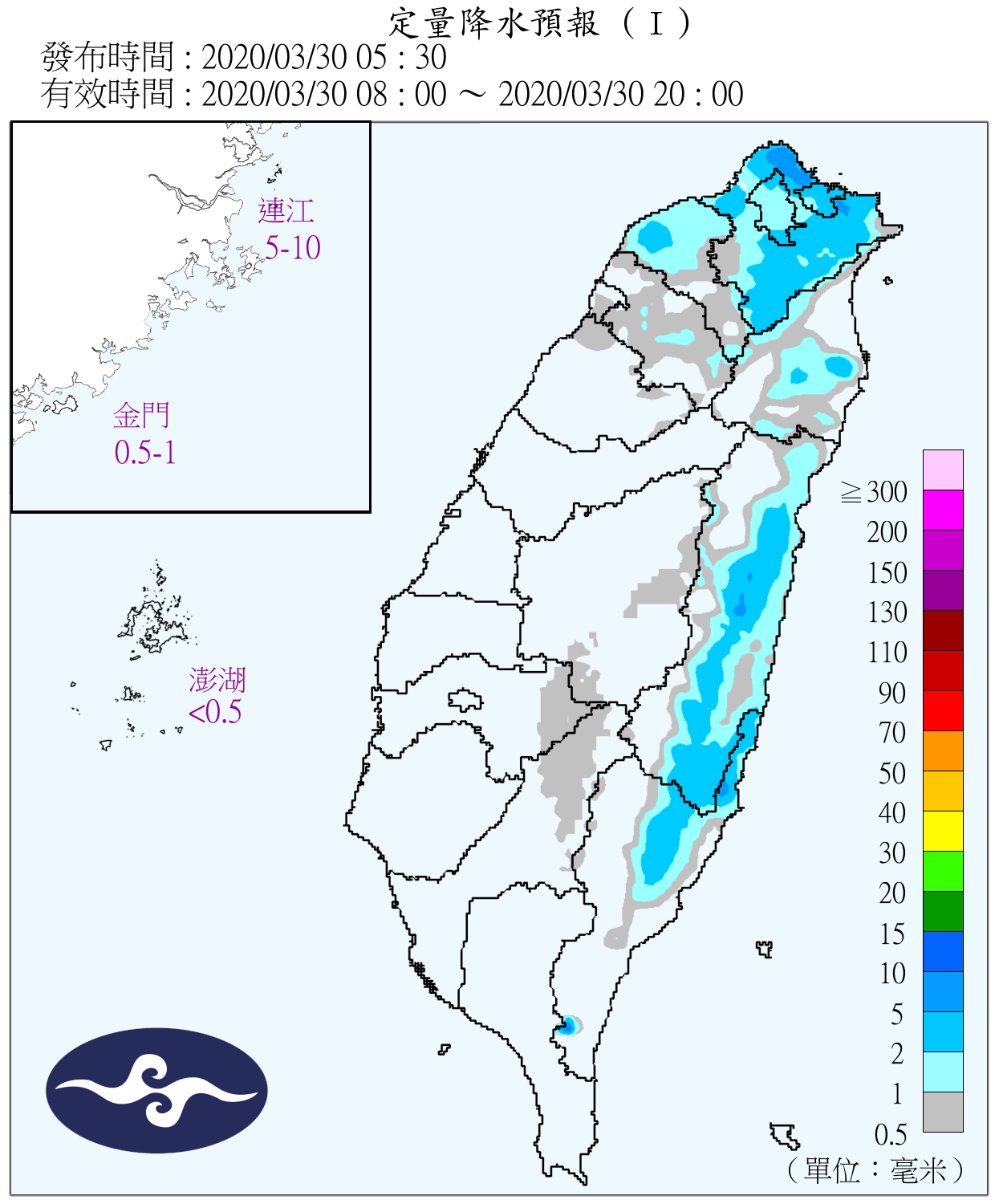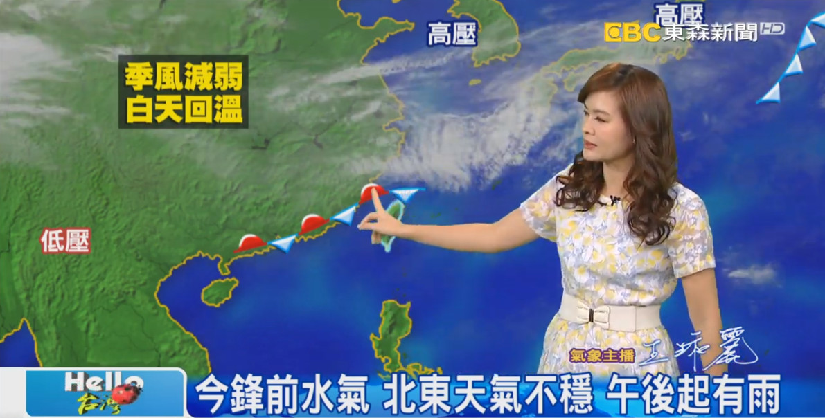 今(30)日上半天的天氣還可以,但由於鋒面相當靠近台灣,午後天氣有變化,桃園以北及東半部有短暫雨,中南部影響則不大,提醒攜帶雨具備用。