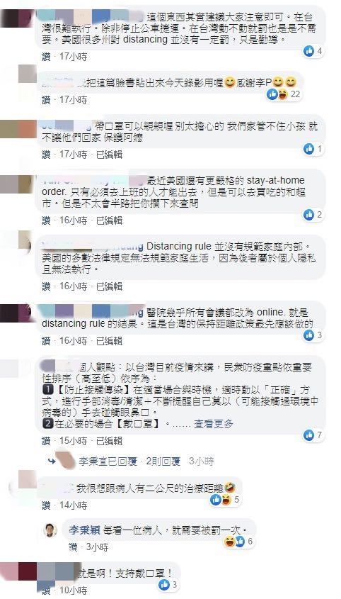 ▼醫師的貼文一發出後,有許多網友前來回應。(圖/翻攝自李秉穎臉書)