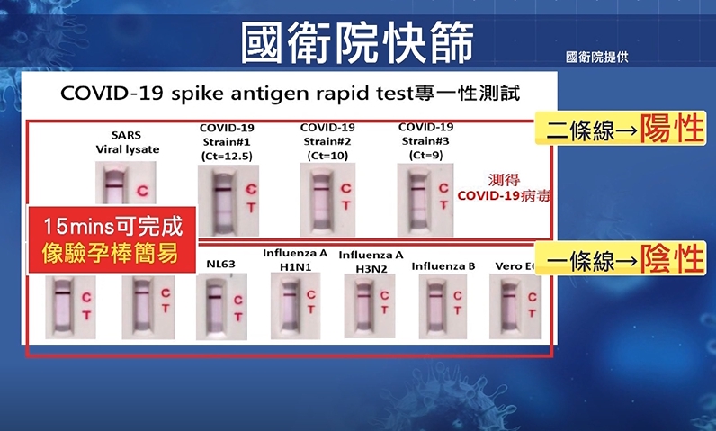國衛院和國防醫學院合作,這款快篩試劑是用過去SRAS病毒抗體為基礎,利用抗體去抓新冠病毒蛋白質,一旦病毒蛋白被抗體抓住,就會顯示陽性反應。