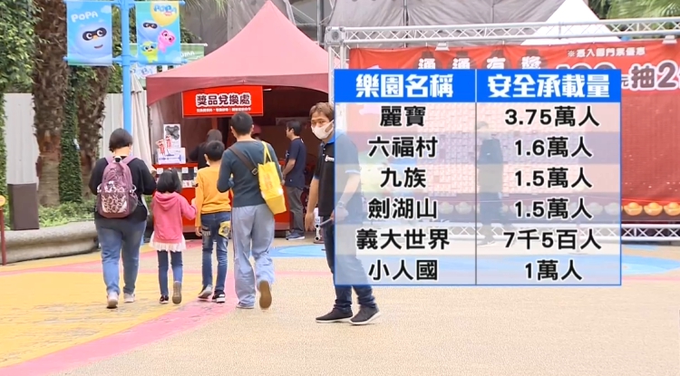 相效於霧台部落大動作,麗寶樂園則是開門歡迎遊客,疫情導致人潮衰退七成,防疫政策全面配合,國內六大遊樂園,包括麗寶樂園,六福村、九族文化村、劍湖山、義大世界和小人國,安全承載量,從3.75萬人到7千5百人不等,只要達6成就總量管制,必須改到周邊景點。