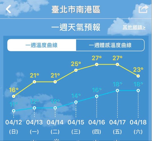 根據氣象局歷史紀錄,4月的冷氣團不常見,上一次是2017年4月2日,低溫約11.5度,再之前是1996年4月2日及3日,低溫約10度。氣象局預測,這波冷氣團15日開始減弱,但輻射冷卻影響,夜晚及清晨氣溫仍低,白天氣溫逐漸回升,北部約24到25度、中南部26到28度、花東25度;降雨方面水氣也不多,多為多雲到晴的天氣,僅東半部地區及北部山區有局部短暫雨。