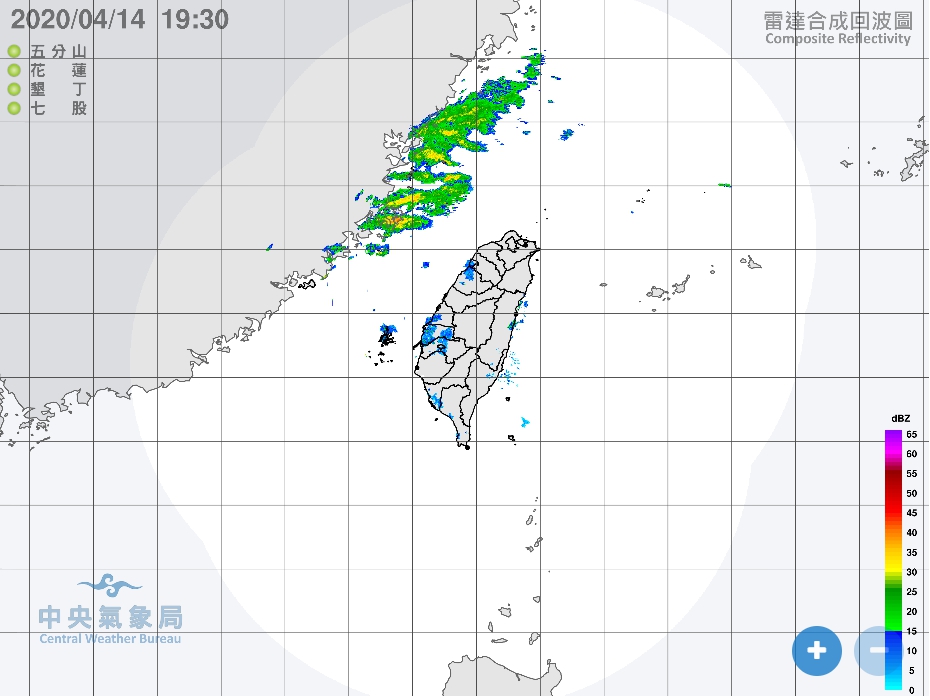 氣象預報指出,周日(19日)、下周一(20日),華南有鋒面移向台灣北部海面,東半部有局部短暫陣雨,其他地區多雲,受到鋒面前暖區影響,午後北部、中南部山區會有局部短暫雷陣雨,北部由於更接近鋒面一點,天氣不穩。