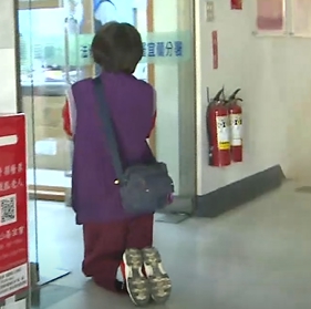 穿著紫色背心的婦人,進入分署內雙膝下跪,就算戴著口罩,還是不難看出難過神情,2016年時,他的兒子因為交通違規,陸續被開出4張罰單,需要繳18000元,卻遲遲沒繳,導致房子將被法拍,但執行署,為了避免造成,不可回復的損失,決議暫緩執行不動產點交。