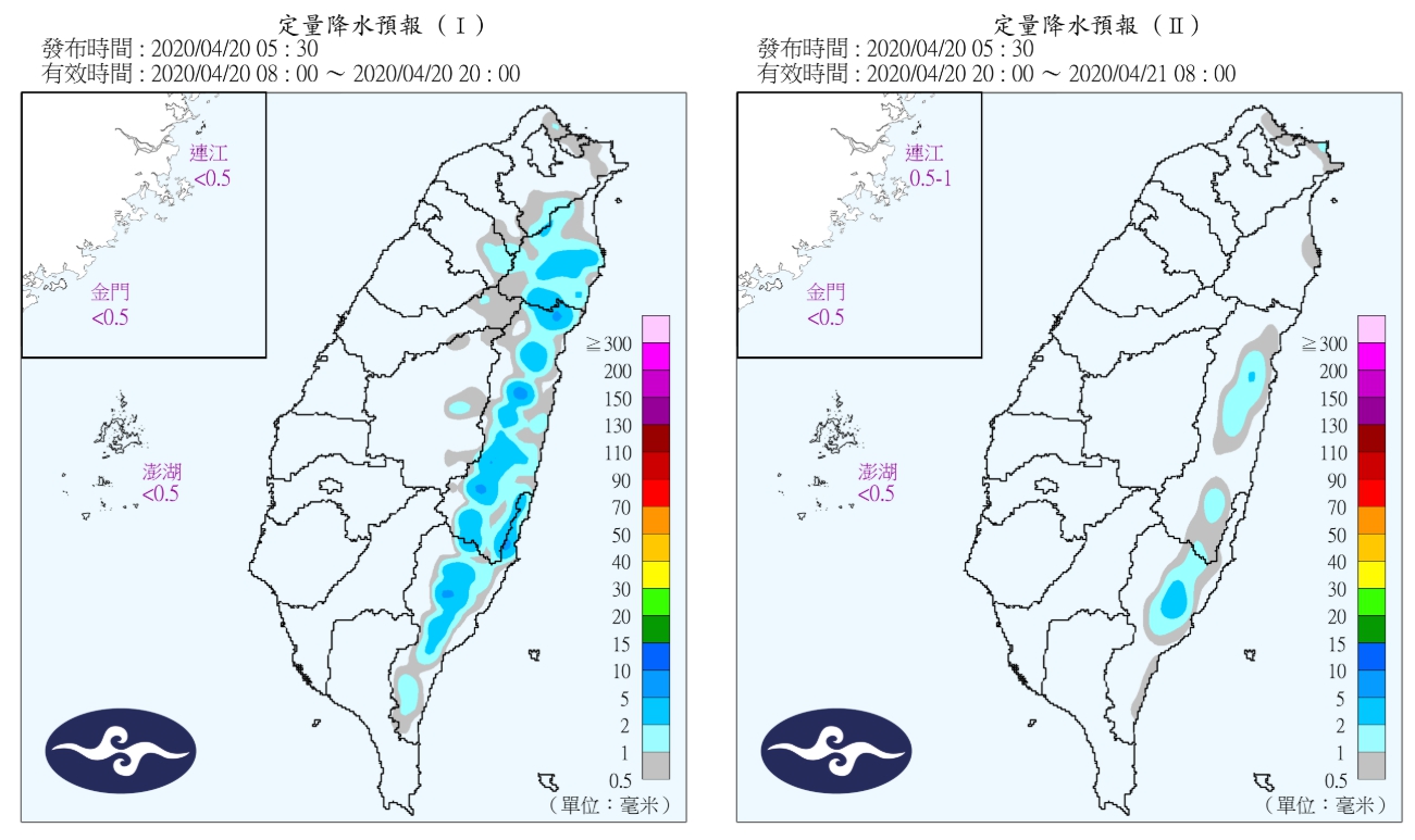 氣象局表示,今天因鋒面尾掃過北部海面,水氣微幅增加,北部雲多,有零星短暫雨,東半部地區則可能出現局部短暫陣雨,中南部維持多雲到晴。明日下半天起,另一鋒面通過,加上東北季風增強,北部及東半部降雨機率再提高,週三至週五持續受東北季風及華南雲雨區影響,天氣轉為濕涼,中部以北及東北部恐出現較大雨勢,週六開始東北季風減弱,僅迎風面及山區有短暫雨。