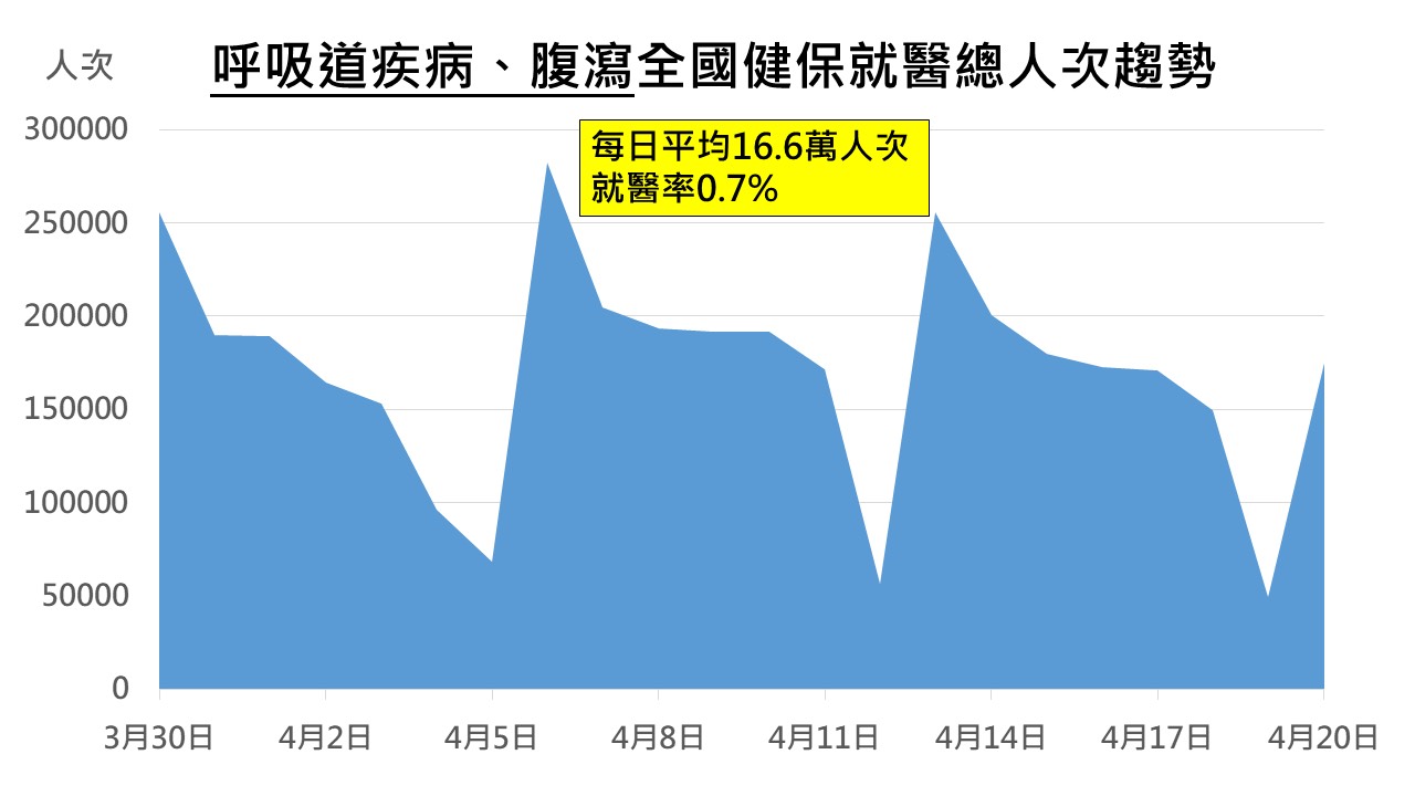 ▼國內呼吸道疾病、腹瀉全國健保就醫人次趨勢。(圖/疫情指揮中心提供)