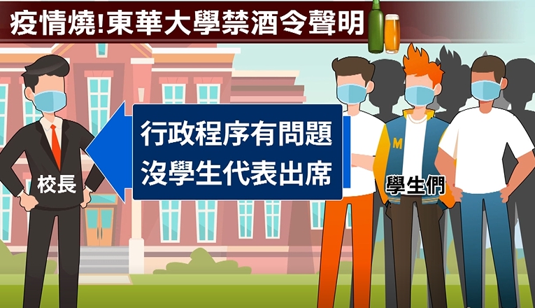 疫情延燒,為了防堵疫情,各個行政單位都祭出防疫措施,花蓮東華大學為了防止群聚,祭出禁酒令,規定學校餐廳和超商都不能賣酒,引發不少學生不滿,認為群聚的種類有很多種,賣酒和疫情的相關性太遠,也控訴校方行政程序有問題,會議沒有學生代表參與,怒批學校獨裁。