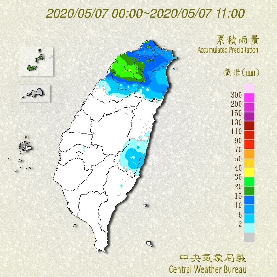 吳德榮也表示,10日晚上起到11日「梅雨季」第1道「移動性」鋒面南下、其結構較強,各地雲量增多,轉變為有局部陣雨或雷雨的天氣,並有伴隨小範圍「劇烈天氣」的機率,屆時各地氣溫下降、北台轉涼。