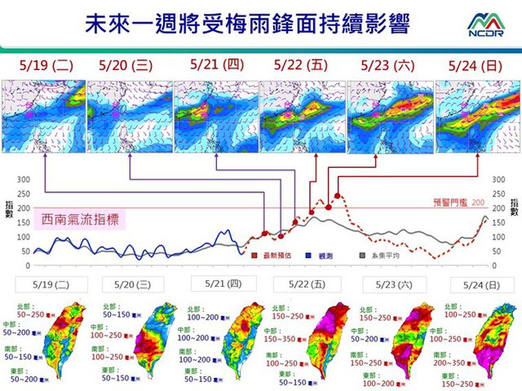 氣象專家彭啟明指出,該梅雨鋒面影響時程及主要降雨熱區大致可以分3階段 :