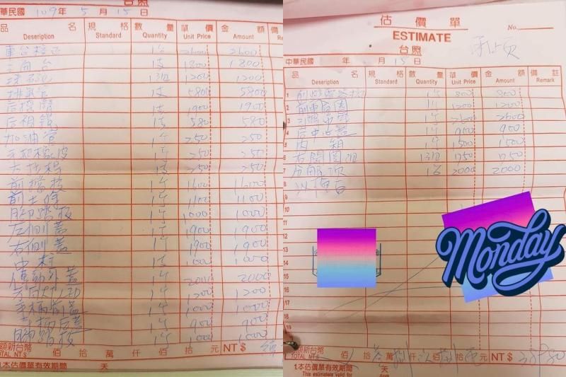 ▼一名網友日前到車行估價修車。(圖/翻攝自臉書'爆料公社)