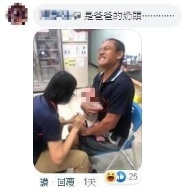 另外,有網友認為爸爸的表情會那麼猙獰,是有其他原因的,「護士踩到爸爸的腳」、「因(應)該是打到爸爸的手上去了」、「其實是札到爸爸重要部位了」、「他(嬰兒)可能捏到爸爸的奶頭了」,也有網友開始分享自己的經歷,「我大寶第一次打預防針,我老公還含淚,我還笑他,哭屁啊」、「我帶兒子去打針也是這樣,針才剛拿出來,小孩還沒哭,當媽的我就自己先哭了」。
