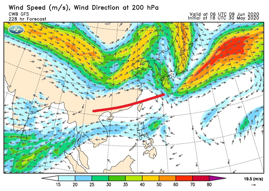 ▼鄭明典指出,台灣上空出現偏東風時,就是一項「出梅」指標。(圖/翻攝自鄭明典臉書)
