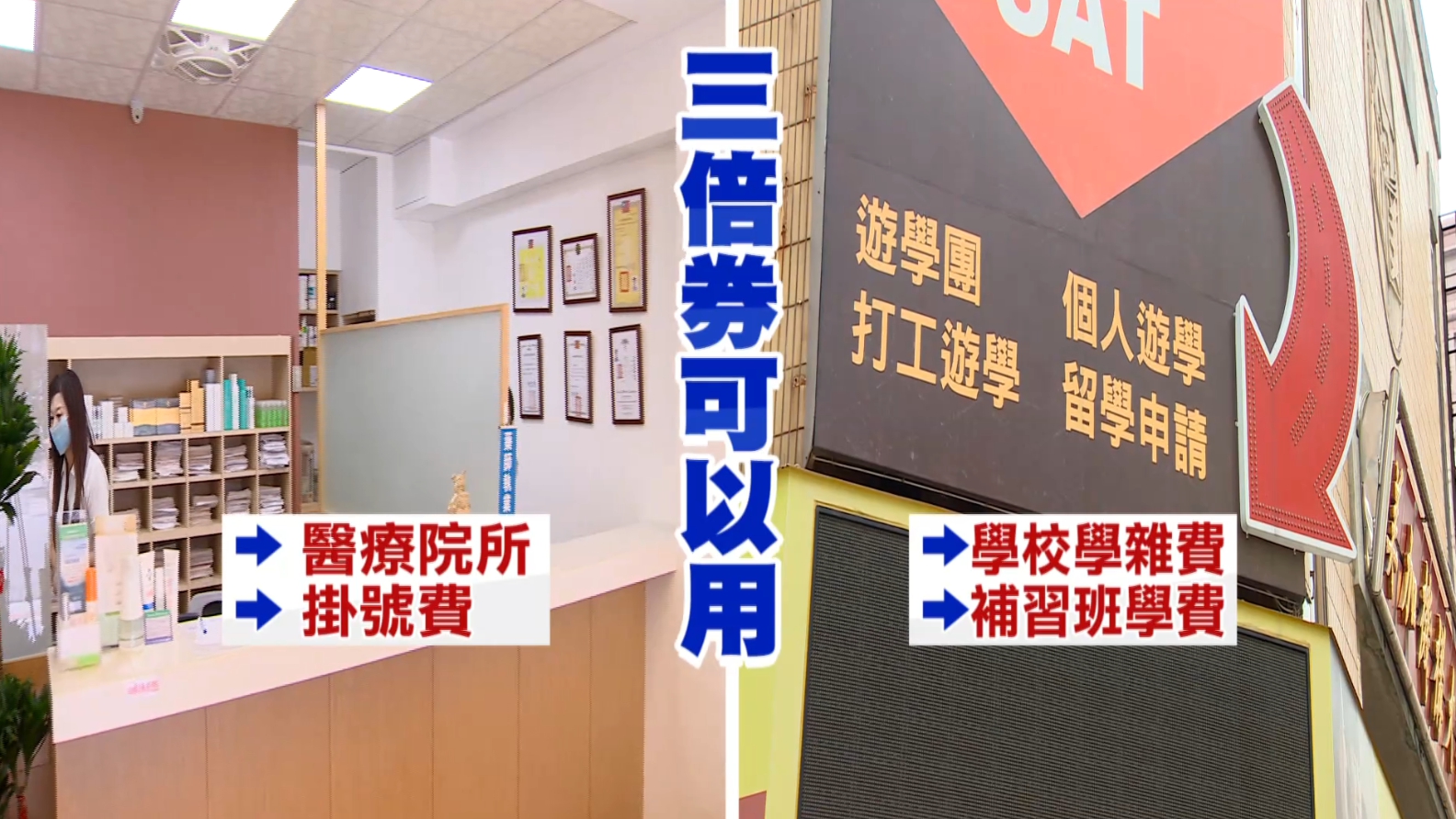 至於實體消費也再放寬,三倍券現在也能看病救急,經濟部初步規劃,醫療院所掛號費能用三倍券,還有家長最關心的問題,現在也定調,學校學雜費跟補習班學費都能折抵。